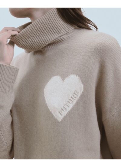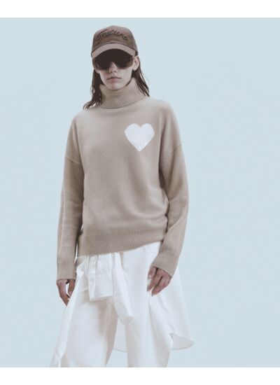 Illuminé par la couleur phare de la saison, ce pull en cachemire se pare d'un cœur et de bandes contrastées. Réhaussé d'un col roulé et de manches longues, il vient réchauffer votre allure avec audace. Associez-le à un pantalon fluide et des sneakers pour un look chic et casual.