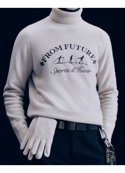 Tout schuss vers un hiver stylé dans ce pull en cachemire infiniment doux. Doté d’un col montant, de manches longues et de bords côtelés, il révèle un motif Ski de fond signé "From Future Sports d’Hiver" à l’avant. D’une élégance décontractée, il s’associe à un t-shirt et un pantalon ample.