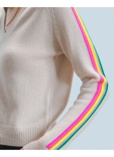Une maille douce pour ce pull court confectionné en cachemire 4 fils. Muni d'un col V et de bords côtelés, il révèle des bandes multicolores le long des manches longues, le détail signature du vestiaire FROM FUTURE. Facile à mixer, complétez votre look avec un jean droit ou un jogging molletonné.