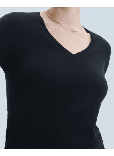 Un basique à porter sans modération : ce pull adopte une maille infiniment douce confectionnée en cachemire. Muni d'un col V, de manches longues et de bords côtelés, il dévoile une coupe ajustée au tombé impeccable. À mixer avec tous les styles, associez-le à un pantalon de tailleur ou une jupe structurée.