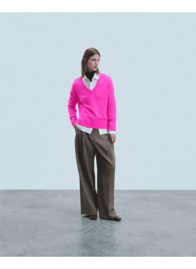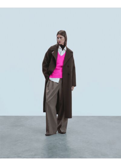 Pièce indispensable du vestiaire FROM FUTURE, ce pull long et oversize incarne l'élégance sans effort. Confectionné en cachemire léger, il révèle des manches longues, des bords côtelés et un décolleté en V. À porter sans modération, il s'associe aisément à un jean casual ou une jupe fluide.
