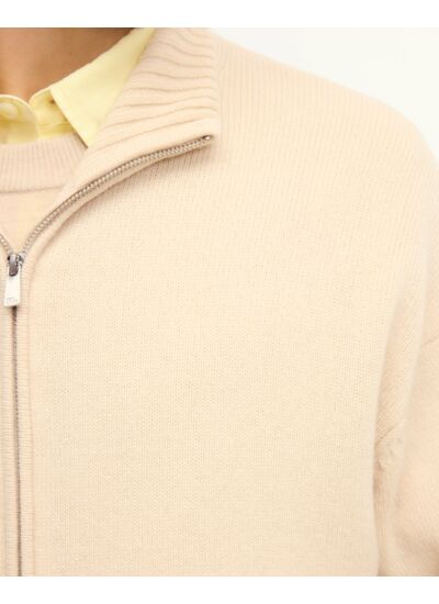 Enveloppez-vous de douceur dans ce pull gilet zippé à col large et oversize. Confectionné en cachemire 4 fils, il est muni de manches longues et de bords côtelés pour plus de confort.