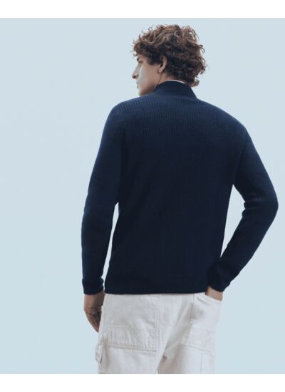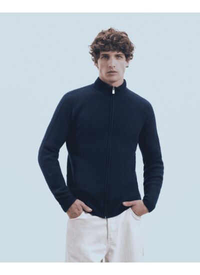 Confectionné en cachemire 4 fils, ce pull gilet adopte une maille douce et côtelée pour réchauffer votre allure de saison. Muni de manches longues, il affiche un col camionneur et une fermeture zippée. Élégant et intemporel, mixez-le à un t-shirt et un jean casual.