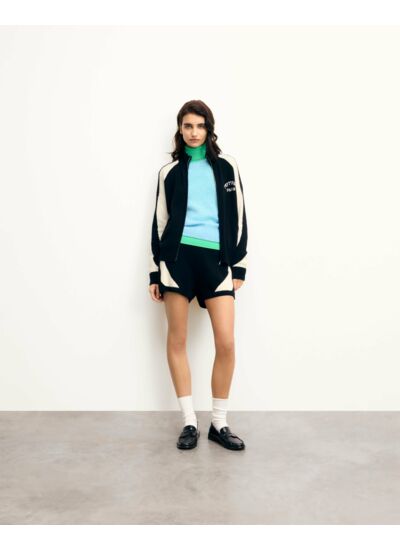 Rejoignez le Club avec ce pull gilet confectionné en cachemire 4 fils. Insufflant une allure sporty, il se distingue par des bandes contrastées le long des manches et une signature "Future Paris" sur la poitrine. Un col montant et des bords côtelés soulignent sa coupe oversize. Jouez le total look bicolore avec le short coordonné.