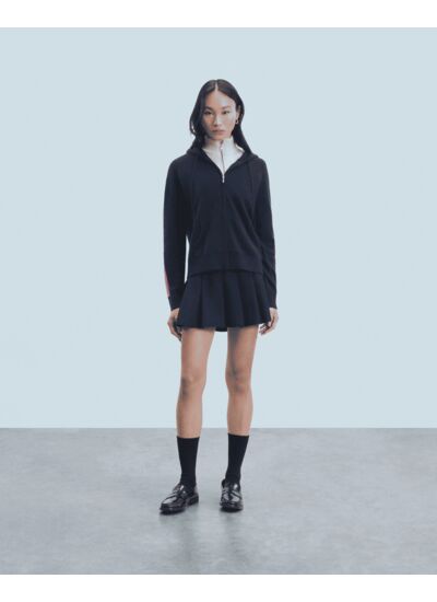 Pièce iconique du vestiaire From Future, ce pull hoodie court se pare de bandes multicolores le long des manches pour réveiller votre silhouette de saison. Confectionné en cachemire doux et léger, il dévoile une capuche à cordons, une fermeture zippée et une poche avant.