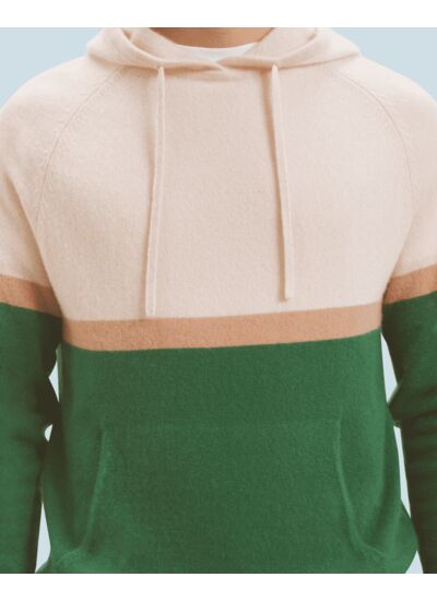 Confectionné en cachemire, ce pull hoodie révèle des bandes contrastées pour un effet color block. Muni d'une capuche à cordons, d'une poche avant et de manches longues, il se porte sans modération et se mixe aisément à un t-shirt et un jean décontracté.