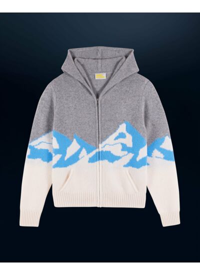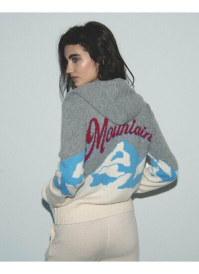 Twistez votre winter silhouette avec ce pull hoodie confectionné en cachemire. Muni d’une capuche et de manches longues, il dévoile un motif contrasté "Mountain" au dos, révélant des sommets enneigés. Idéal pour réchauffer votre allure, il s’associe à un t-shirt et un pantalon ample.