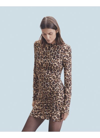 La taille est ajustée et les volumes revisités dans cette robe courte ornée d'un imprimé léopard. Munie de manches longues et d'un col rond, elle dévoile une jupe croisée légèrement fendue. À porter comme une seconde peau, réhaussez votre look avec des sandales à talons ou des sneakers.