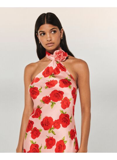 Ornée d'un imprimé fleuri, la robe longue et ajustée Sienna en satin de soie confère une silhouette audacieuse. Sans manches, elle dévoile une bretelle asymétrique, réhaussée d'une fleur au cou, et une jupe fluide. Idéale en toutes occasions, signez votre allure futuriste avec une paire d'escarpins.