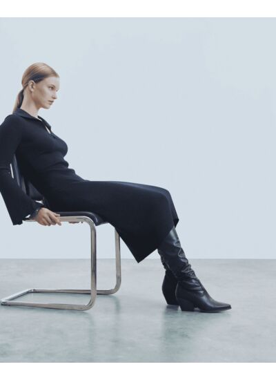 Confectionnée en laine mérinos certifiée RWS (Responsible Wool Standard) et en lurex, cette robe longue adopte une maille côtelée et métallisée. Munie d'un col polo contrasté, de manches longues et de poignets fendus, elle dessine une silhouette ajustée et se porte comme une seconde peau. Mixez-la avec une paire d'escarpins ou de sneakers.