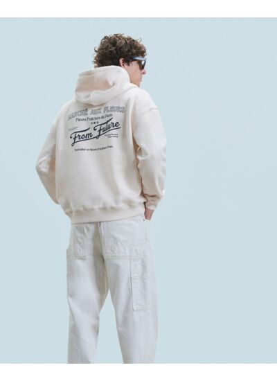 Direction le Marché aux Fleurs avec ce sweatshirt hoodie en coton. Orné d'une signature "From Future" à l'avant et au dos, il dévoile une capuche à cordons et des manches longues. Associez-le à un t-shirt et un jean pour un look casual.