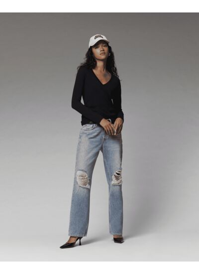 Avec ses lignes affirmées, ce t-shirt en coton s'impose comme un incontournable du vestiaire futuriste. Alliant confort et élégance, il dévoile des manches longues et un col en V. À porter seul ou en superposition, complétez votre look avec un pantalon de tailleur ou une jupe vaporeuse.