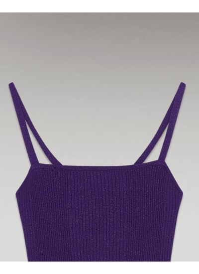 Effet seconde peau pour ce top en Laine Mérinos extra fine certifiée RWS (Responsible Wool Standard) et en lurex. En maille côtelée, moelleuse et ultra aérée, il dévoile de fines bretelles et un décolleté droit.
