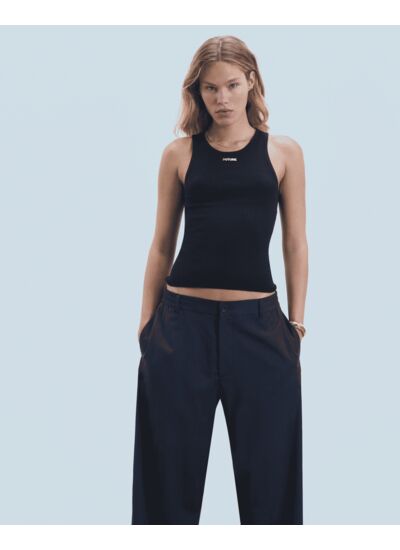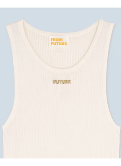 Confectionné en laine mérinos certifiée RWS (Responsible Wool Standard), ce top débardeur dévoile une coupe ajustée pour un effet seconde peau. Muni de bretelles fines et d'un décolleté rond, il se pare d'une plaque dorée "Future" pour réhausser votre allure de saison. Facile à mixer, il s'associe à un pantalon décontracté ou une jupe fluide.