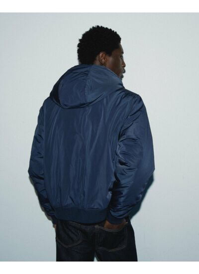 Pièce maîtresse de la saison, cette veste bomber zippée donne instantanément de l'allure. Réhaussée d'une capuche à cordons de serrage, elle dévoile deux poches à bouton pression, une poche plaquée zippée à multi poches et tirette sur la manche gauche.
