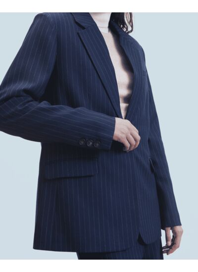 Confectionnée à partir de laine, cette veste blazer à rayures joue des lignes pour une allure structurée. Munie d'un col tailleur et de manches longues, elle dévoile une poche poitrine et deux poches laterales passepoilées. Misez sur le total look avec le pantalon coordonné.
