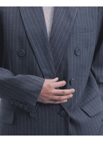 Confectionnée à partir de laine, cette veste blazer rayée dessine une silhouette élégante et affirmée. Munie de manches longues, elle révèle un col en pique et une fermeture boutonnée croisée. Misez sur le total look avec le pantalon ou la jupe coordonnée.