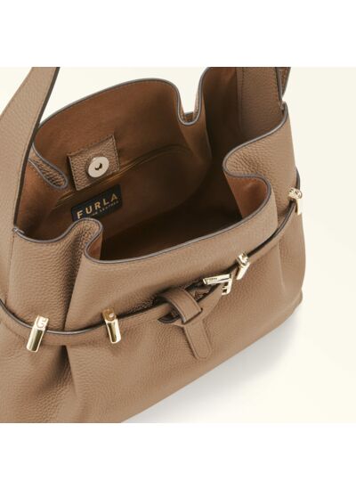 L’AURA M DRAWSTRING incarne l’élégance moderne avec une silhouette épurée et un jeu de textures sophistiqué. Ce sac Furla allie fonctionnalité et style pour sublimer toutes vos tenues.
