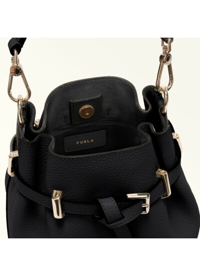 Conçue par Furla, cette pochette associe le cuir Vitello Keria, le cuir Vitello Sidney et le suède pour une texture riche et sophistiquée. Sa silhouette minimaliste et son cordon de serrage apportent une touche moderne tout en assurant un accès rapide à vos objets. Idéale pour organiser vos accessoires, elle se glisse aisément dans vos sacs ou se porte seule pour un look épuré.
