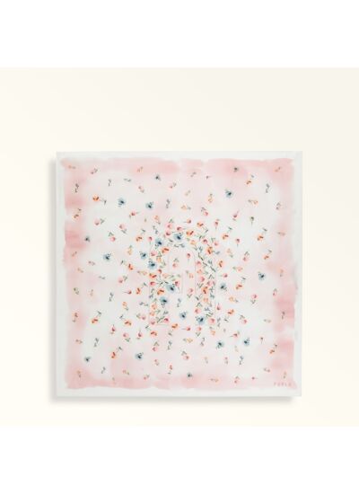 Composition : 100% SEM. Dimensions : 90 x 90 cm. Tissage : twill de soie. Motif : Spring Frame. Marque : Furla.