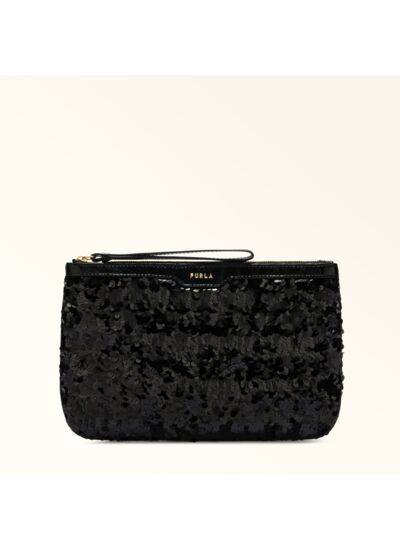 Fabriquée en tissu paillettes (90% polyester, 10% cuir) et cuir vitello craquelé (62% polyester, 20% cuir, 18% polyester), cette pochette combine robustesse et esthétique. Dimensions généreuses, finitions soignées et marque Furla garantissent qualité et authenticité.