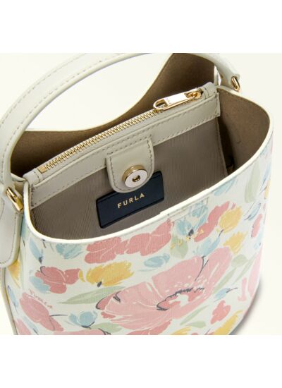 Le Danae Mini Bucket Bag incarne l’élégance contemporaine avec une silhouette compacte et un cuir Saffiano raffiné. Ce sac signé Furla est l’accessoire idéal pour sublimer toutes vos tenues, du quotidien aux occasions spéciales.