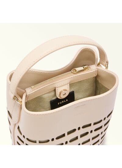 Le Danae Mini Bucket Bag incarne l’élégance contemporaine avec une silhouette compacte et un cuir traforato délicatement travaillé. Ce sac Furla allie audace et raffinement pour sublimer toutes vos tenues, du quotidien aux occasions spéciales.
