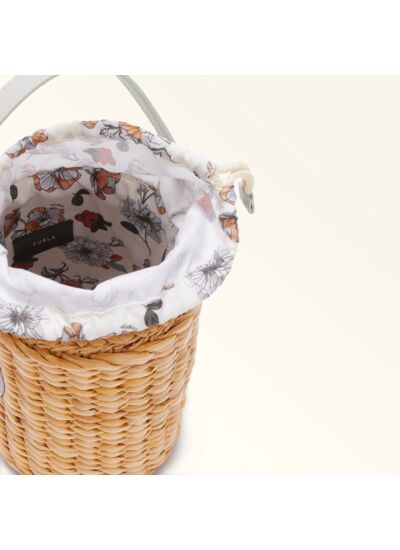 Conçu par Furla, ce sac associe la légèreté de la paglia à la douceur du vitello Andromeda, rehaussé par un tissu Saint Mill unique. Sa forme bucket offre une capacité surprenante tout en restant facile à porter, pour un look à la fois décontracté et sophistiqué. Parfait pour celles qui veulent allier praticité et raffinement au quotidien.