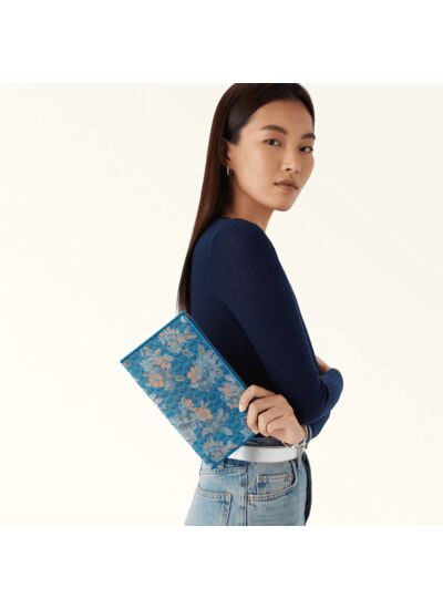 Conçue pour accompagner vos essentiels avec discrétion, cette pochette se distingue par son tissu jacquard qui mêle textures et motifs subtils, apportant une touche sophistiquée à vos tenues. Sa silhouette enveloppe, minimaliste et structurée, facilite le transport de vos indispensables tout en affirmant votre goût pour les accessoires de qualité.