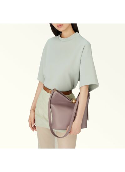 Le sac seau Furla Sfera Soft M allie élégance contemporaine et fonctionnalité urbaine. Son design épuré et ses lignes douces s’adaptent à toutes les occasions, du bureau à la sortie en ville.