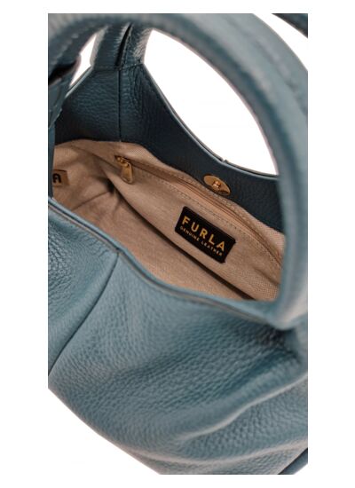 Composition : 90 % polyester, 10 % cuir pour la doublure, 100 % cuir pour l’extérieur. Marque : Furla.