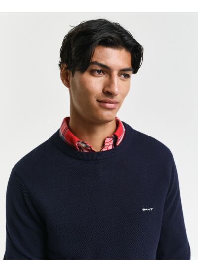 Découvrez le Cotton Piqué Crew Neck Sweater de GANT, un incontournable de la mode masculine qui allie confort et élégance. Conçu en coton piqué de haute qualité, ce pull à col rond est idéal pour les hommes à la recherche d'un vêtement polyvalent et stylé. Sa texture douce et respirante en fait un choix parfait pour les journées décontractées ou les soirées plus habillées.