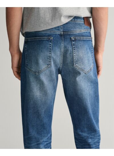 Le design intemporel de ces jeans en fait un choix polyvalent, idéal pour une tenue décontractée ou plus habillée. Que vous souhaitiez les porter avec une chemise pour une sortie en ville ou avec un t-shirt pour un look casual, ces jeans s'associent facilement à votre garde-robe. L'écusson GANT à l'arrière ajoute une touche d'authenticité et de style, témoignant de la qualité et du savoir-faire de la marque.