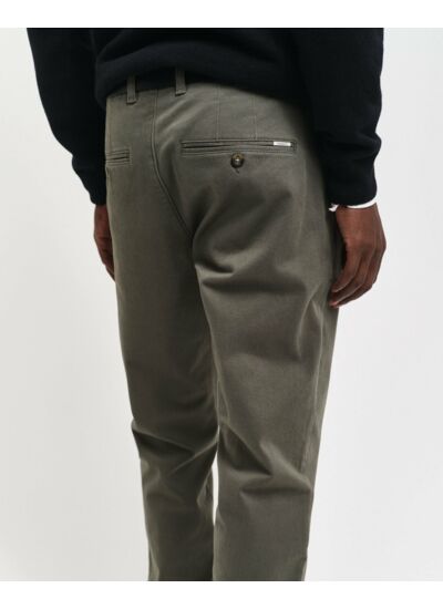 Fabriqués avec du coton de qualité supérieure, ces chinos sont non seulement doux au toucher, mais également respectueux de l'environnement grâce à l'initiative BETTER COTTON. Vous pouvez ainsi porter ces pantalons en toute confiance, sachant qu'ils sont produits de manière durable. L'étiquette GANT, discrètement placée au-dessus de la poche arrière passepoilée, témoigne de l'authenticité et du savoir-faire de la marque.