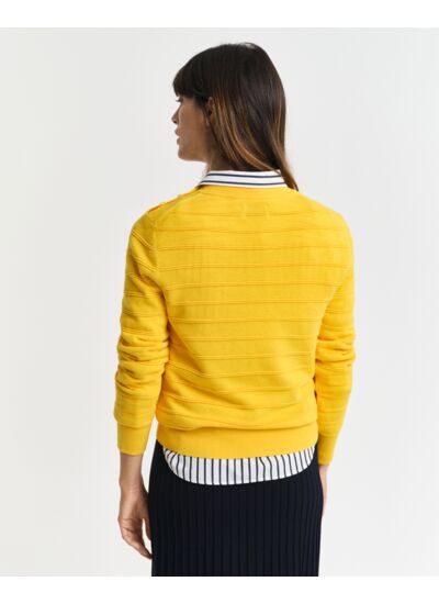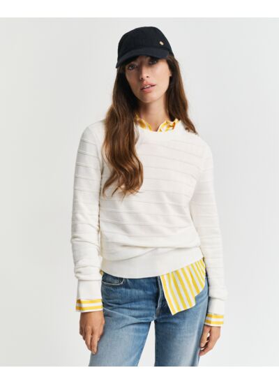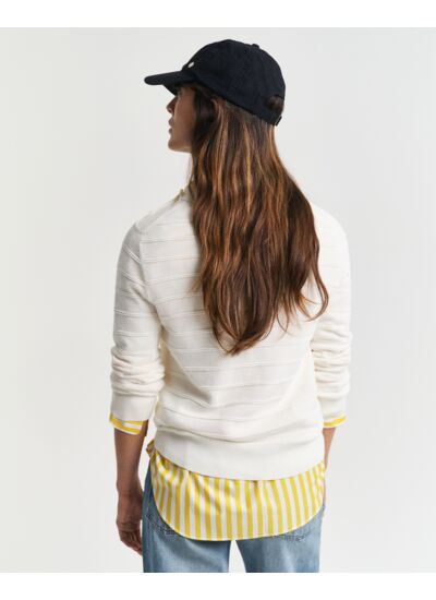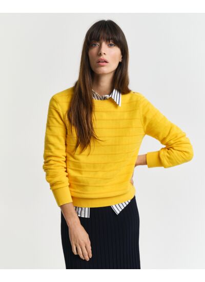 Découvrez le Textured Cotton Crew Neck Sweater de la marque GANT, un incontournable de votre garde-robe féminine. Conçu en coton de haute qualité, ce pull à col rond se distingue par sa texture unique qui apporte une touche d'élégance et de confort à votre tenue. Idéal pour les journées fraîches, ce pull en maille est parfait pour un look décontracté tout en restant chic.