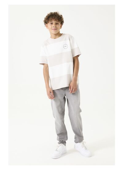 Découvrez le T-shirt rayé avec impression sur la poitrine et le dos, un incontournable de votre garde-robe pour cette saison ! Confectionné à 70 % en coton et 30 % en coton recyclé, ce T-shirt allie confort et durabilité, tout en soutenant l'initiative Better Cotton qui œuvre pour de meilleures conditions dans l'industrie cotonnière.
