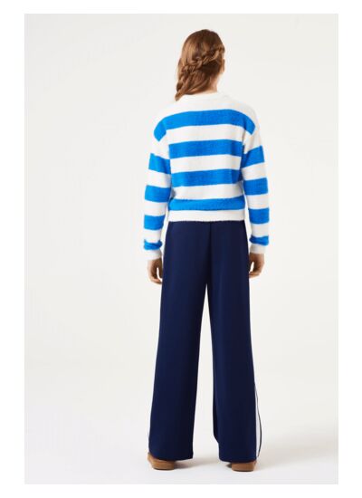 Le détail rayé ajoute une touche tendance à ce classique, vous permettant de rester chic tout en étant à l'aise. Que ce soit pour une sortie décontractée entre amis ou une journée cocooning à la maison, ces pantalons s'adaptent à toutes vos envies. Associez-les à un pull oversize ou à un t-shirt ajusté pour un look à la fois décontracté et stylé.