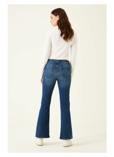 Consultez le guide de taille GarciaLe Celia 245 accentue la forme féminine grâce à sa coupe super slim, sa taille haute et ses jambes évasées à partir du genou. La ceinture tombe en moyenne juste en dessous du nombril. Les jambes évasées offrent des jambes optiquement plus longues. Ce jean a un délavage foncé avec une couleur légèrement plus claire sur les jambes.