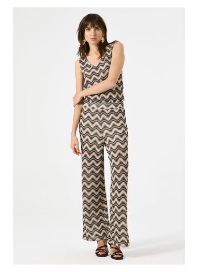Découvrez les Pants with allover print, une pièce incontournable qui allie confort et style. Avec leur taille haute et leur jambe droite, ces pantalons offrent une silhouette flatteuse qui s'adapte à toutes les morphologies. Leur ceinture élastique assure un ajustement parfait, vous permettant de vous sentir à l'aise tout au long de la journée.
