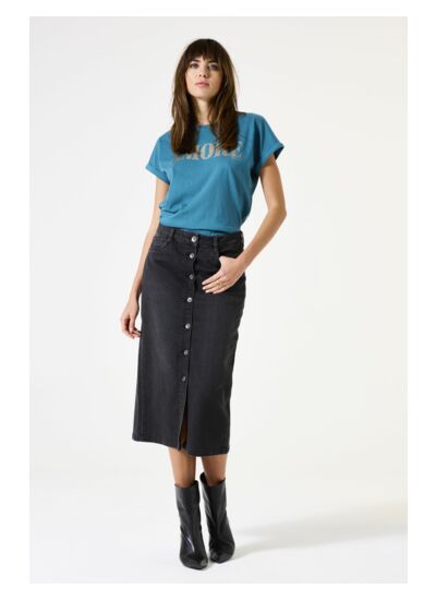 Découvrez la jupe midi élégante avec fermeture à boutons, un incontournable pour toutes vos occasions. Conçue avec une taille haute et une coupe ajustée, cette jupe mettra en valeur votre silhouette tout en offrant un confort optimal grâce à sa composition en 79 % coton, 20 % coton recyclé et 1 % élasthanne. En optant pour ce modèle, vous participez à une mode durable, favorisant l'économie circulaire grâce à l'utilisation de matériaux recyclés.