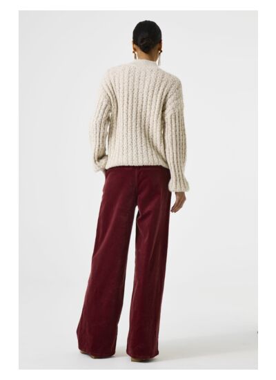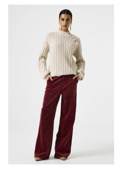Les détails de boutons ajoutent une touche d'originalité, faisant de ce sweater un incontournable pour vos tenues de saison. Associez-le à un jean pour un look casual ou à une jupe pour une sortie élégante. Ce sweater est non seulement un choix de mode, mais aussi un geste pour l'environnement, transformant des matériaux résiduels en un vêtement tendance.