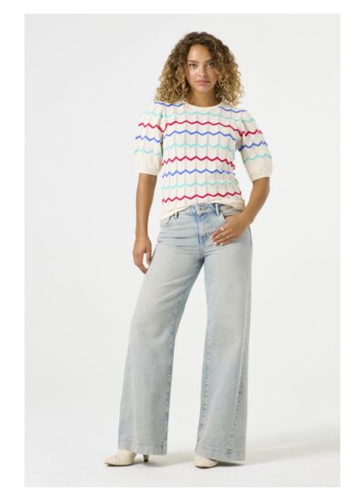 Découvrez le pull en maille ouverte à motifs, un incontournable de votre garde-robe qui allie confort et style. Avec ses manches courtes bouffantes et son encolure ronde, ce pull en 100 % coton offre une coupe régulière qui sublime toutes les silhouettes. Sa texture légère et aérée est idéale pour les journées ensoleillées ou les soirées fraîches, vous permettant de rester à la fois élégante et à l'aise.