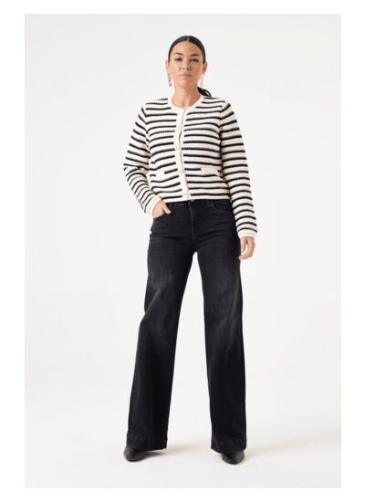 Découvrez le cardigan rayé avec motif tricoté, l'allié parfait pour affronter les journées fraîches avec style et confort. Conçu avec des manches longues et un col rond, ce cardigan à fermeture par boutons s'adapte à toutes vos tenues, qu'il s'agisse d'une sortie décontractée ou d'une journée au bureau. Sa coupe régulière met en valeur votre silhouette tout en vous offrant une liberté de mouvement optimale.