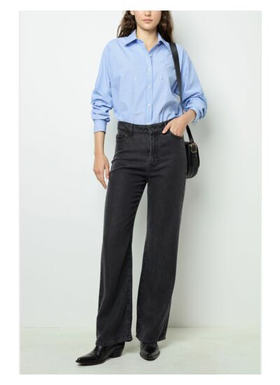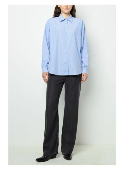 Chemise en popeline rayée avec des strass dans un esprit classique revisité. 100% coton.