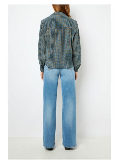 Chemise en 100% soie. Imprimé géométrique dans un esprit seventies.