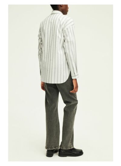 Chemise en popeline à rayures et strass dans un esprit classique revisité. Coton mélangé.