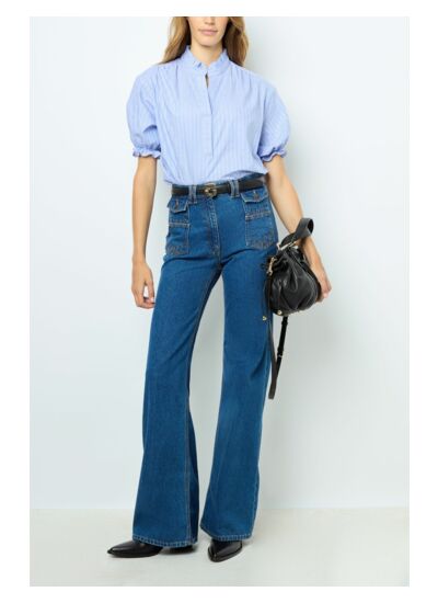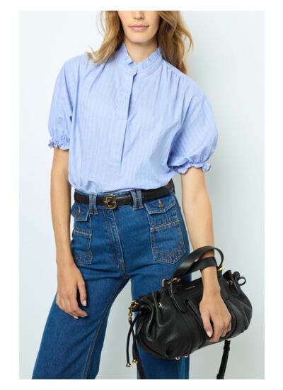 Blouse rayée à col montant et manches courtes. 100% coton.