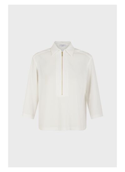 Blouse en crêpe fluide avec un zip doré à l'encolure.