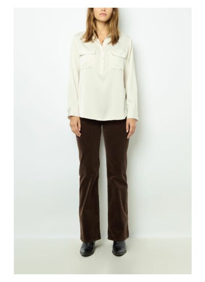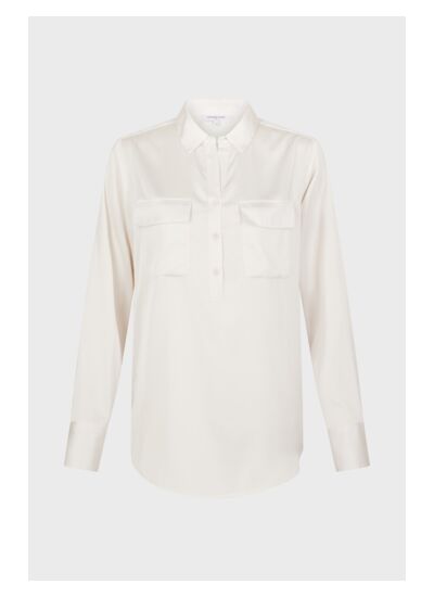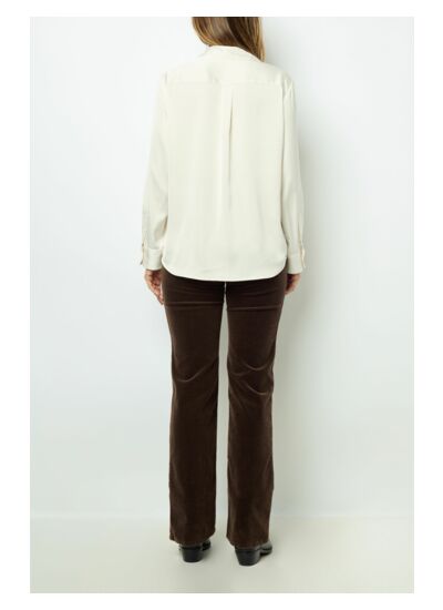 Blouse satinée écrue au toucher soyeux.