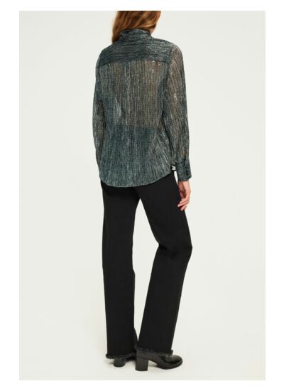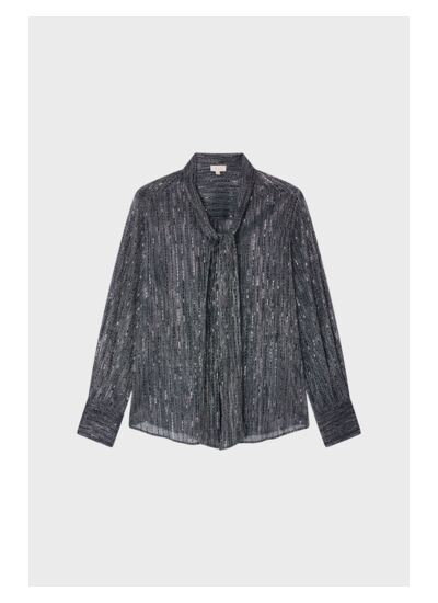 Quels sont les détails qui font la différence sur cette chemise ? Le motif à lurex apporte un éclat raffiné tandis que le col lavallière souligne l’esprit vintage chic. Les manches longues avec poignets fermés par trois boutons ronds et la fermeture par petits boutons ronds garantissent une finition soignée et élégante.